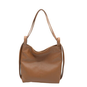 Χειροποίητη γυναικεία δερμάτινη τσάντα ώμου & σακίδιο πλάτης. Είναι 100% χειροποίητη από γνήσιο μαλακό δέρμα με εσωτερική επένδυση από βαμβάκι. Διαθέτει επίσης δύο επίπεδες τσέπες και μία εξωτερική τσέπη στην πλάτη με φερμουάρ.